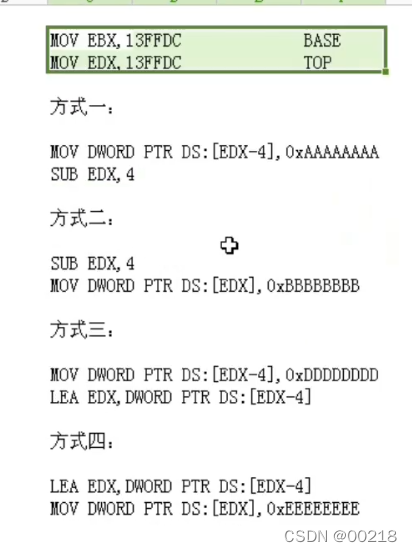 注:以上两个指令中不允许使用 8 位寄存器 \ 内存地址,如果使用的是 16 位的内存或寄存器那么栈顶只会偏移两个字节。