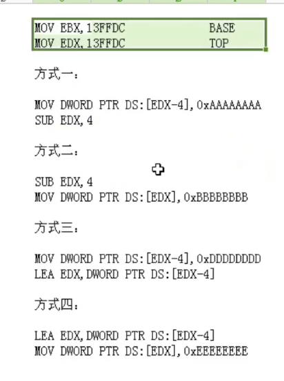 注:系统默认 EBP 为栈底,ESP 为栈顶。
